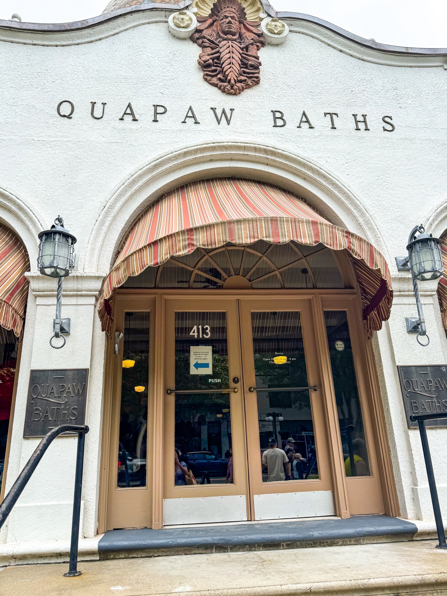 9:45 a.m. Arrive to Quapaw baths & Spa because they open at 10 a.m. and it’s first-come, first-serve, but the line starts lining up since before. If you want to book a private bath, I recommend you to do it way in advance, specially during a holiday weekend because they book fast. Since we were not able to get a private bath, we just did the general entry, hence why we needed to get there before they open. We really enjoyed relaxing at the thermal pools at Quapaw. They have showers and restrooms and they do an amazing job at keeping the place very sanitize and clean.