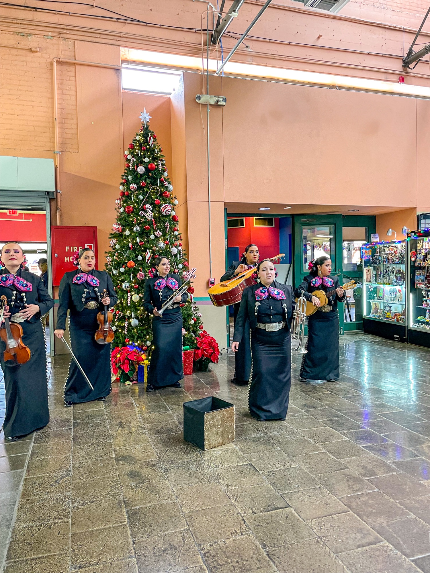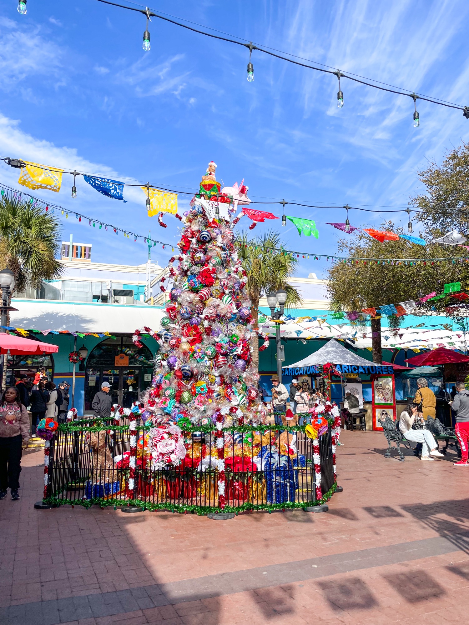 11 a.m. As a last stop in San Antonio visit the Historic Market Square, which is a three-block outdoor plaza and the largest Mexican market in the United States. Enjoy live music at the main plaza and eat fresh fruit cups, elote and aguas frescas at the market. Shop for unique christmas gifts for your friends and family.